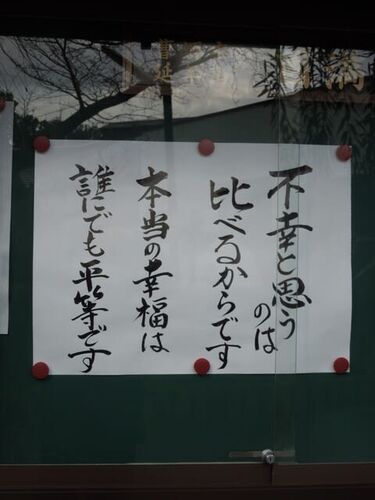 久しぶりにお寺の掲示板。 不幸と思うのは比べるからです。本当の幸福は誰にでも平等です。 なるほど。自分より上を見たら、不幸やて思てしまうわな。 そやけど自分より下を見たら幸福やて思うやん。つまり幸福やと思うのも比べるからなんやな。 いやいや、…