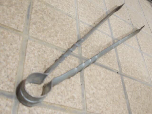 左手にビニール袋、右手に炭バサミ。